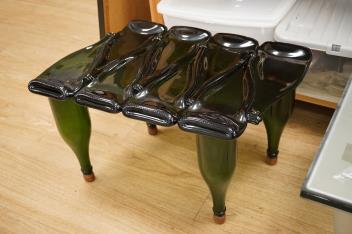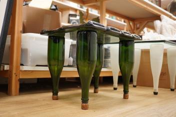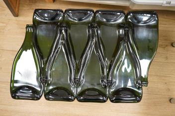 Lot 1406 , A Mary Canny ‘Champagne’ green art glass bottle table, 34cm high x 55cm wide x 38cm deep