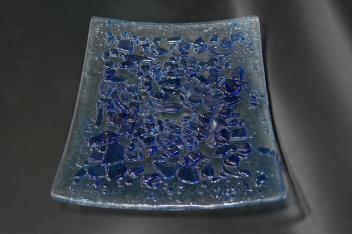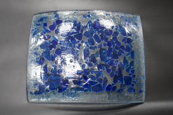 A Mary Canny shaped art glass ‘Blue Jewelled Platter’ 26.5cm x 21.5cm