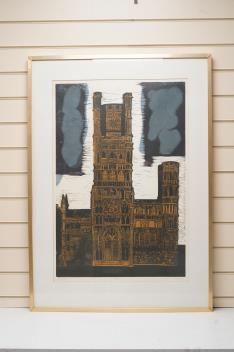 Lot 1706 , Richard Neal (20th. C), ‘Ely Cathedral’, signed in pencil, limited edition 7/50, artists proof linocut, 78 x 53cm