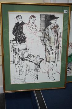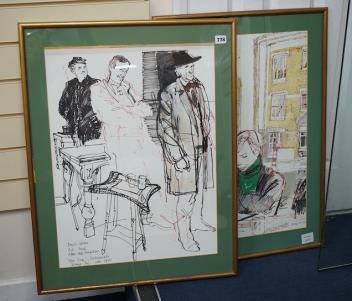 Late 20th century, ‘Alan MacNaughton & Marjorie Yates’, and ‘David Calder, Bob Peck and Alan MacNaughton’, The Price rehearsals, 1990, two mixed medias, 60 x 44cm