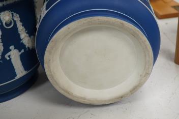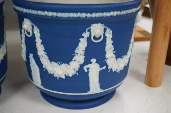 A pair of Wedgwood blue Jasperware jardinieres, 23cm high