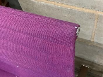 Frames good including chrome finish; upholstery with acceptable wear but both top corners of back with small patches worn through; no damage seen; label dated 2007, as shown.