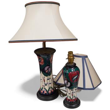 Lot 1352 , Tow Moorcroft ‘Rennie Macintosh’ style lamps, tallest 28cm