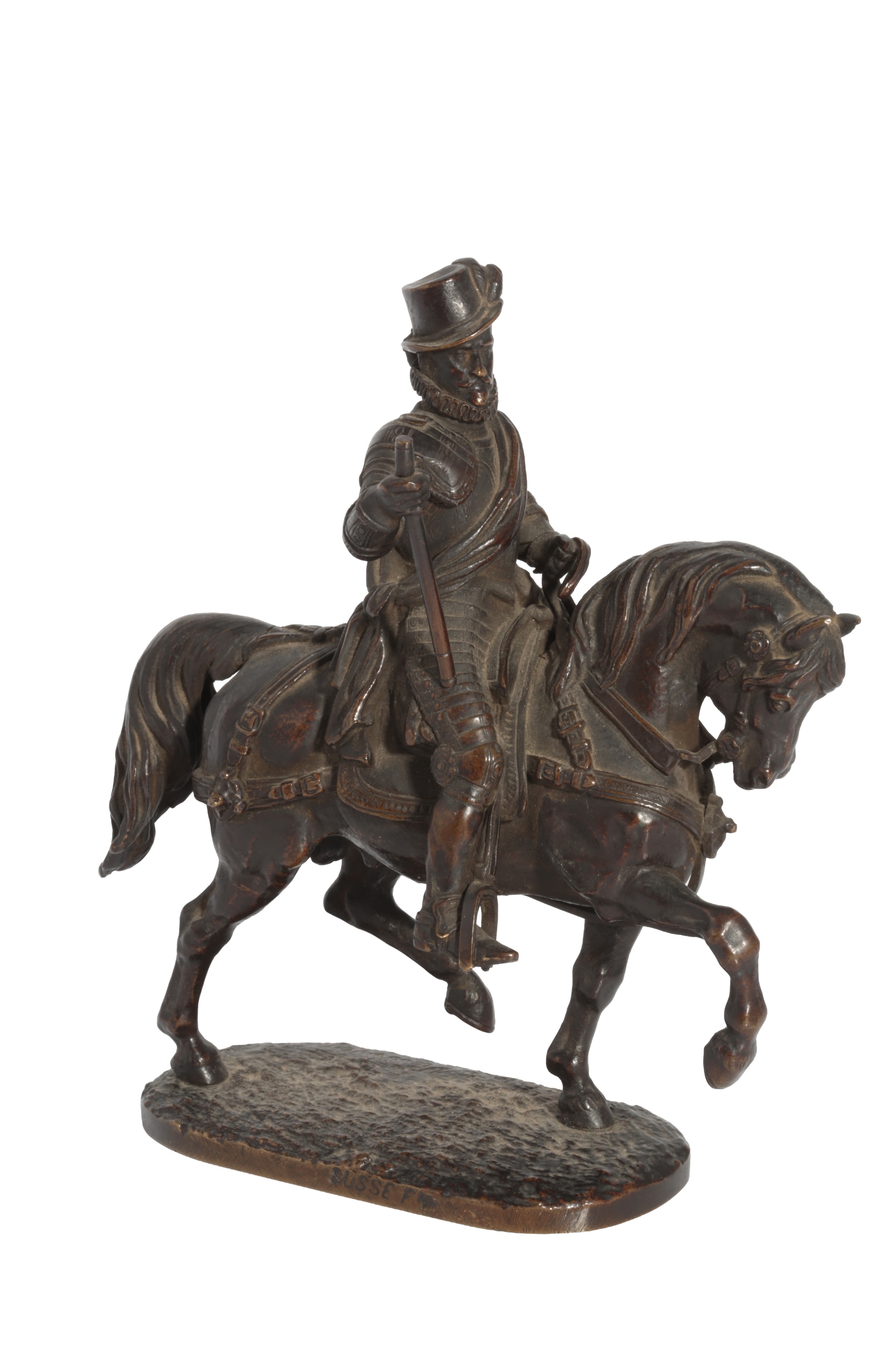 Alfred-Émilien O'Hara, Comte de Nieuwerkerke (1811-1892). A bronze figure of William of Orange on horseback, signed with Susse Fres. foundry mark, 16.5cm high