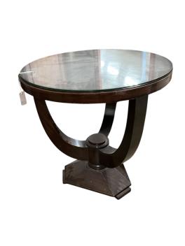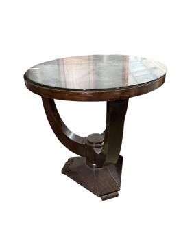 An Art Deco circular centre table, diameter 70cm, height 70cm together with a bentwood low seat chair
