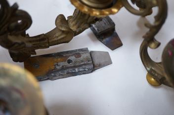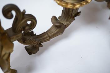 Lot 513 , A pair of cast brass three branch wall sconces, 27cm deep
