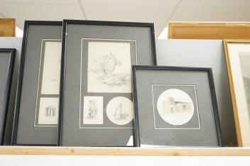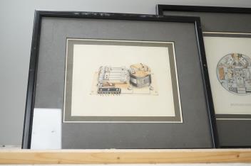 Lot 1690 , A collection of finely executed watercolour and pencil drawings, some technical subjects to include an accelerometer and Optical Blank Shaping Machine, framed as five, largest overall 40 x 29cm