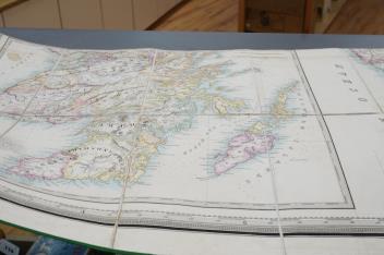 Lot 157 , A mid-19th century Bradshaw’s Railways of Great Britain, comprising of two linen mounted maps, edged in green cloth (divided into East and West), and contained within the original gilt embossed leather slip case with own