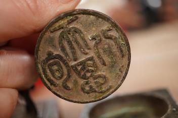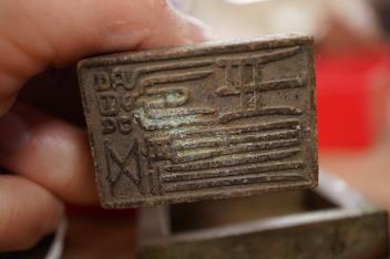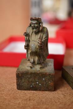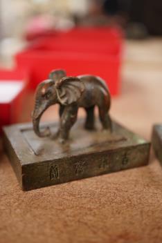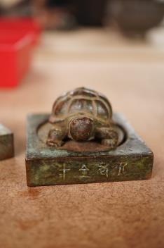 Lot 1381 , Three Chinese bronze seals comprising an elephant, tortoise and seared elder, largest 4.5cm square