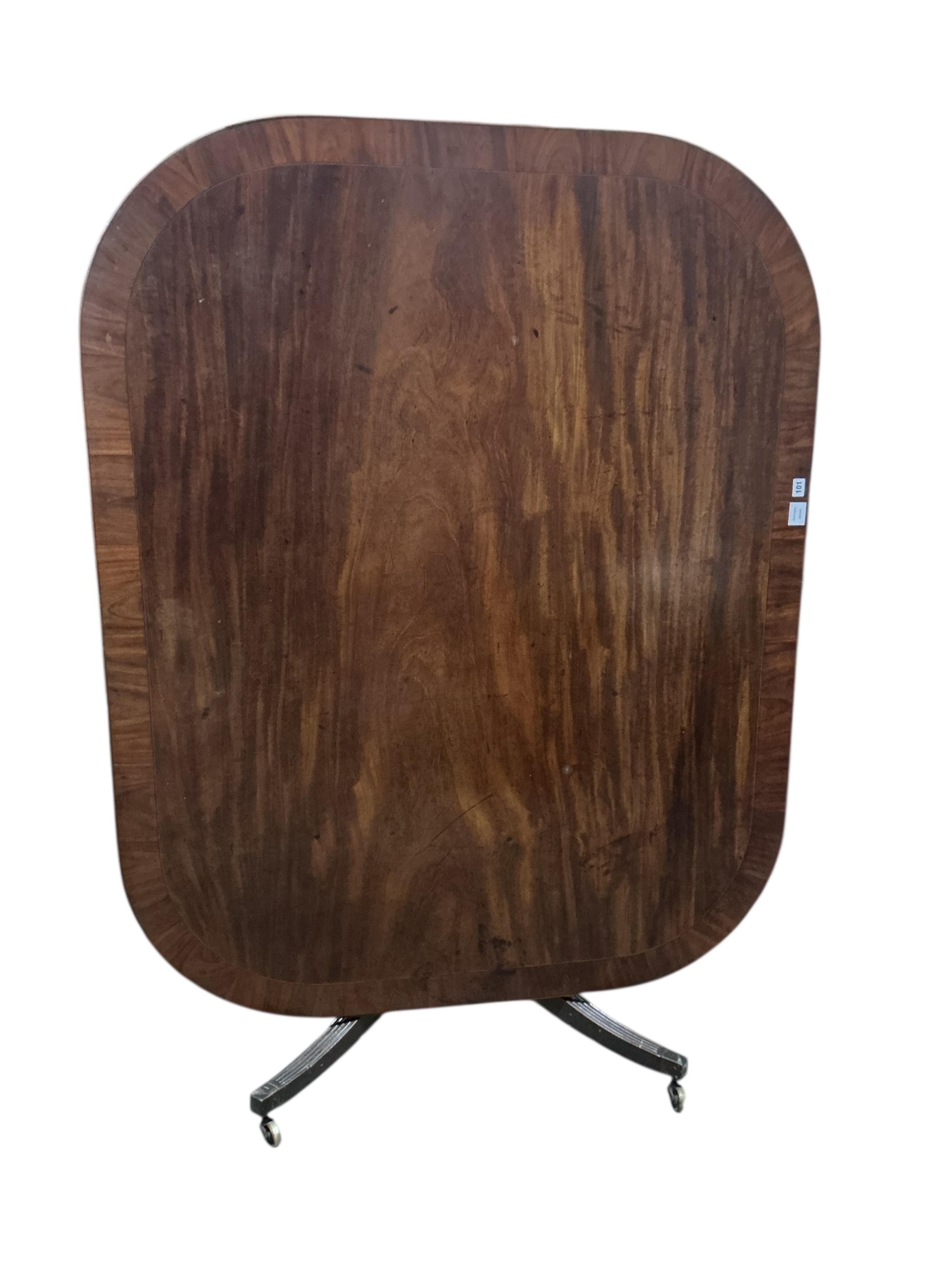 Lot 101 , A Regency banded mahogany rectangular tilt top dining table, width 156cm, depth 126cm, height 72cm