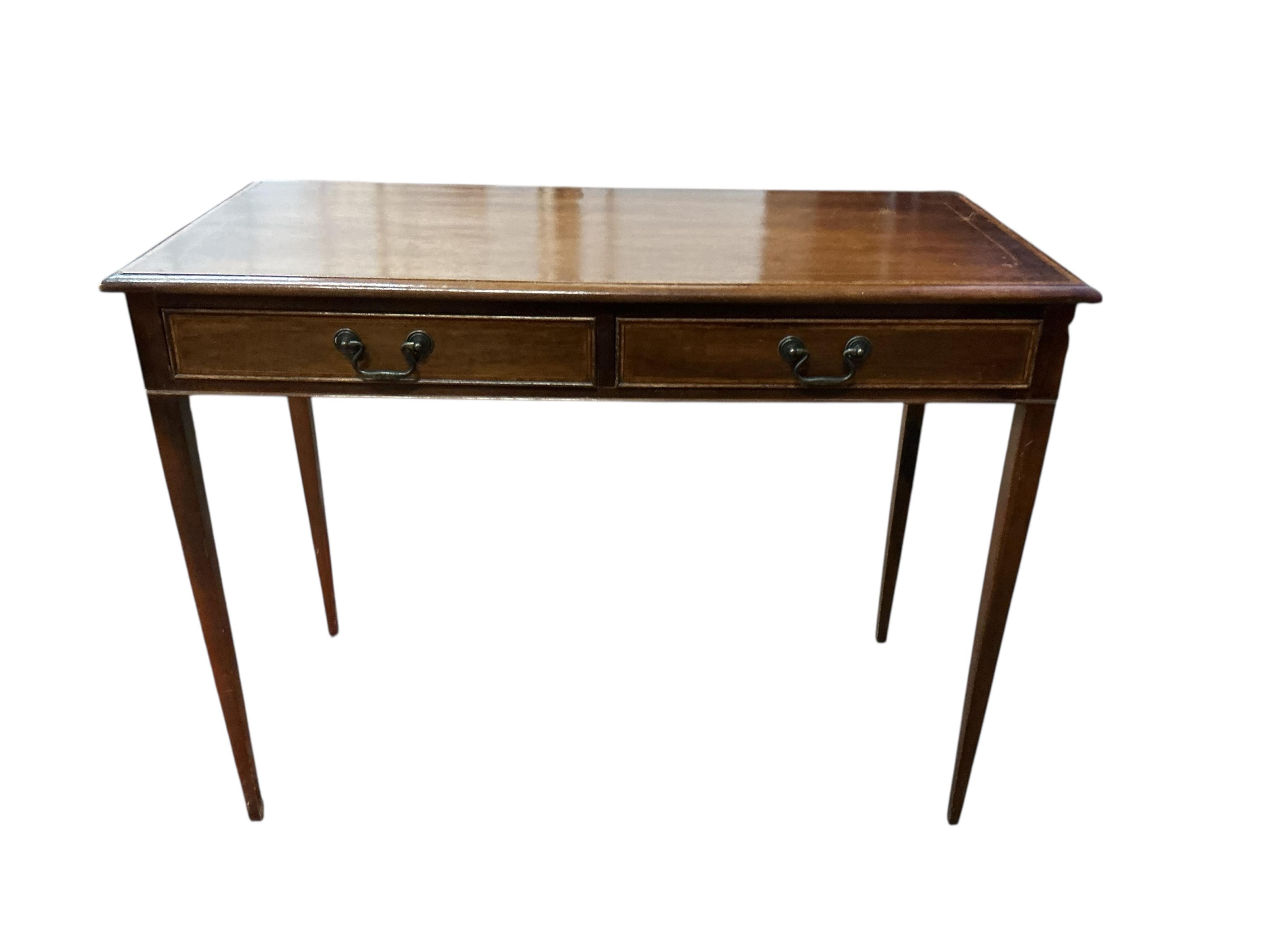 Lot 102 , An Edwardian satinwood banded mahogany two drawer side table, width 104cm, depth 50cm, height 78cm