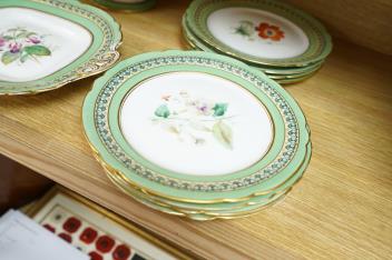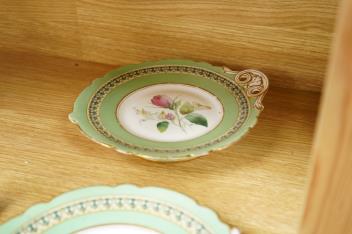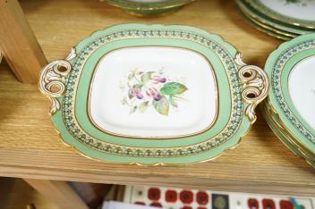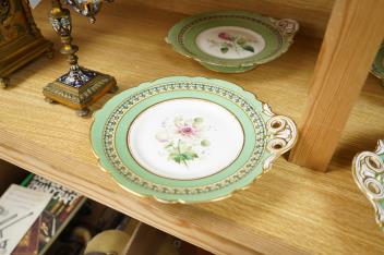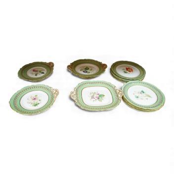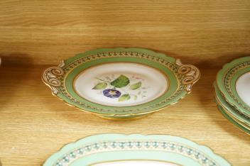 Lot 339 , A Victorian bone china flower painted dessert service, four serving dishes and eight plates, latter 23cm