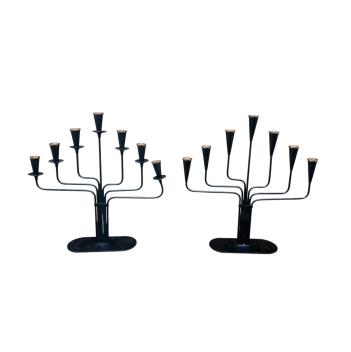 Lot 3113 , Gunnar Ander (Swedish, 1908–1976), A pair of mid century seven light wrought iron candelabra, height 28cm.