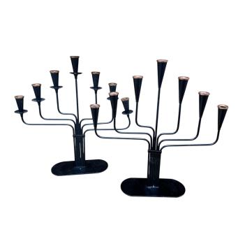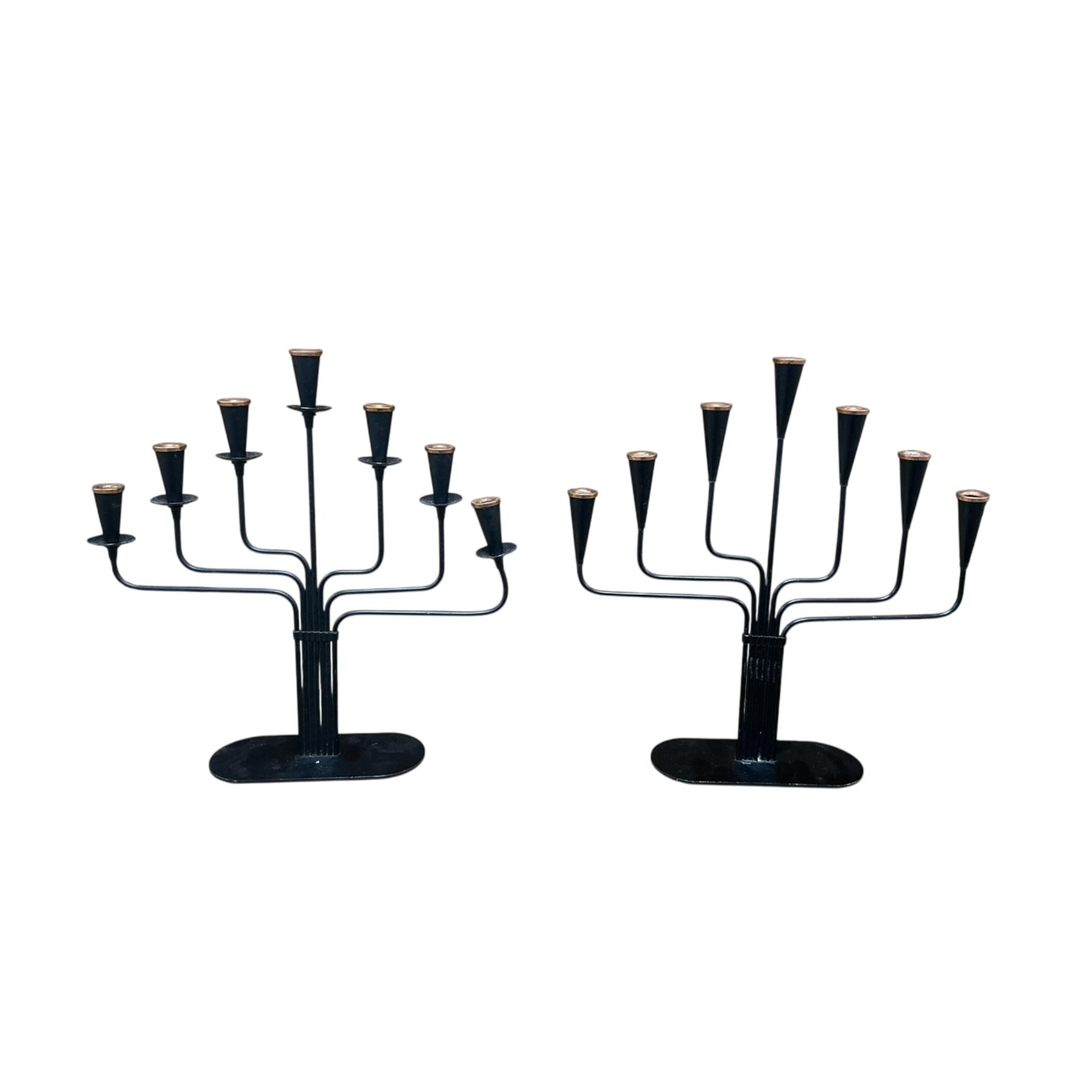 Gunnar Ander (Swedish, 1908–1976), A pair of mid century seven light wrought iron candelabra, height 28cm.