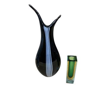 Lot 3128 , A Murano glass Somerstown wave vase, a Vicks Lindstrand for Kosta “Zebra” vase, and a Flygsfors Coquille vase by Paul Kedelv, tallest 36cm, (3).