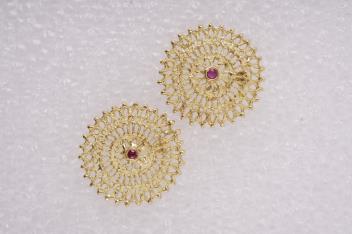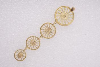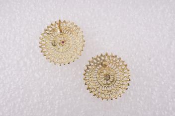 In good condition, some minor warping to wheel motifs, some minor loss to openwork on earrings where post fittings are attached.