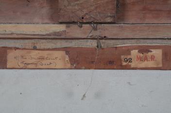 In good, original condition. There is some surface dirt and the painting may benefit from a clean. The frame with cracking throughout and general wear.