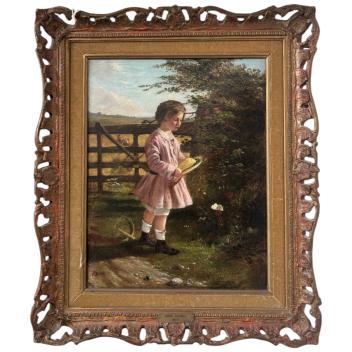 Lot 150 , John Duvall, 1816-1892, Study of a young girl before a gate and fields