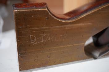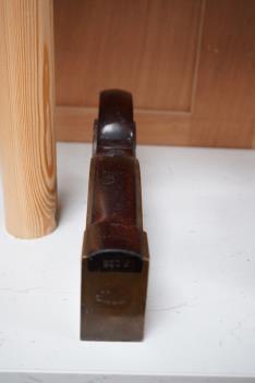 Lot 1026 , A George Miller gunmetal shoulder plane with steel sole, and rosewood infill and wedge, with Marples 1 1/2” iron, stamped ‘G. Miller, 24 Ampton St., Grays Inn Rd.’ to the front, and with several owner’s stamps and engrav