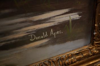 Lot 1759 , Donald Ayres (British, b.1936), 'River landscape', signed, oil on board, ornate gilt framed, 66 x 85cm