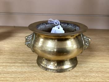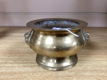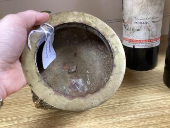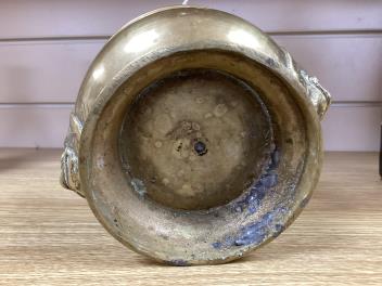 Lot 398 , A Chinese bronze censer with mask handles, early 20th century, 13cm diameter.