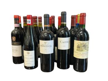 Lot 1123 , Nineteen bottles of assorted red wine to include Chateau Pontet Canet Pauillac, Terraccia Chianti and Finca Moncloa.