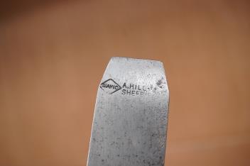 An unmarked steel thumb plane, fitted with a 1 1/8” iron stamped ‘A. Hill, Sheffield’, the sole 12cm long