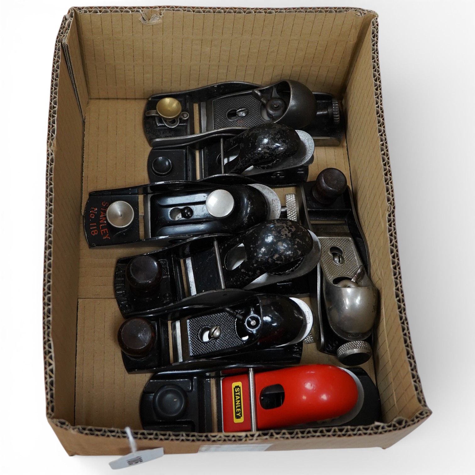 Lot 1005 , Seven Stanley block planes, including a type one No.103, together with a No.61 low angle block plane, a No.120, a No.118, and three others
