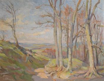 Lot 1701 , A. Maud Randall (fl.1904-1940), ‘Below the Ring‘, signed, Brighton Art Gallery exhibition 1948 label verso, 35 x 45cm