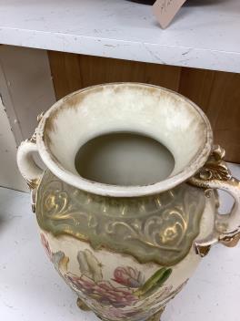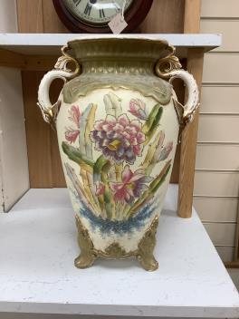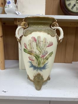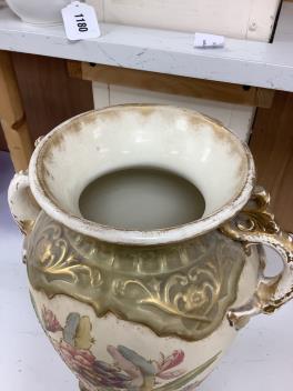 Lot 1178 , A pair of early 20th century Royal Bonn two handled floral decorated vases, 44cm high