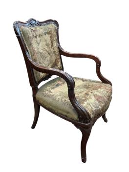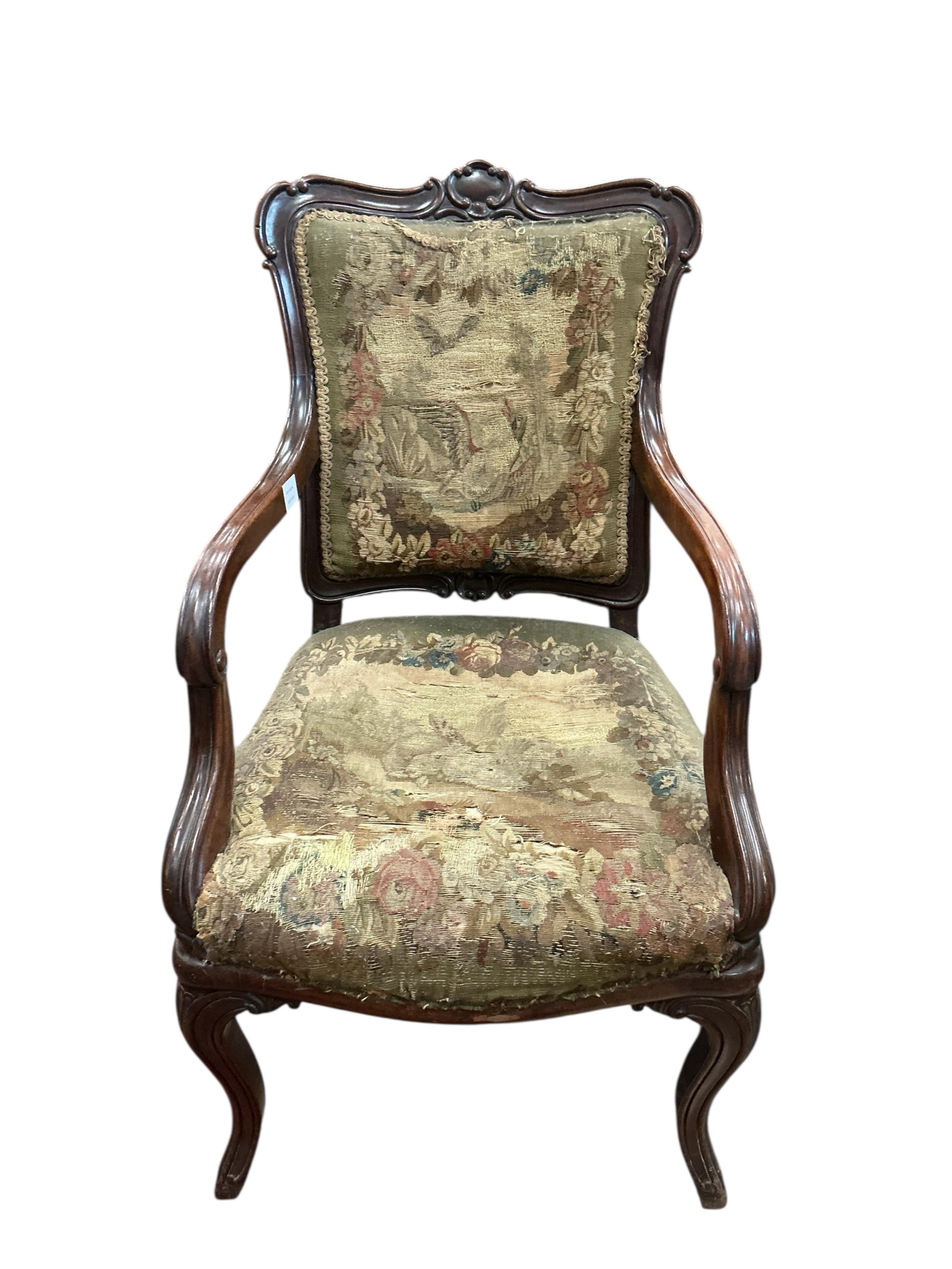 Lot 107 , A mid 19th century carved mahogany elbow chair with polychrome tapestry upholstery, width 56cm, depth 53cm, height 96cm