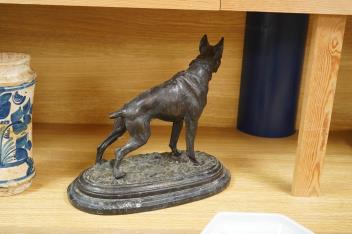Lot 335 , After P.J. Mene, a bronze French bulldog, on verde antico marble plinth, height 26cm.