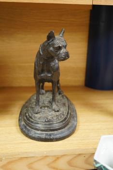 After P.J. Mene, a bronze French bulldog, on verde antico marble plinth, height 26cm.