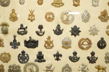Lot 62 , A framed and glazed display of military cap badges and Glengarry badges, including; the Devonshire regiment, the Leicestershire regiment, the King’s Own Scottish Borders, the Royal Inniskilling Fusiliers, the Army Remoun