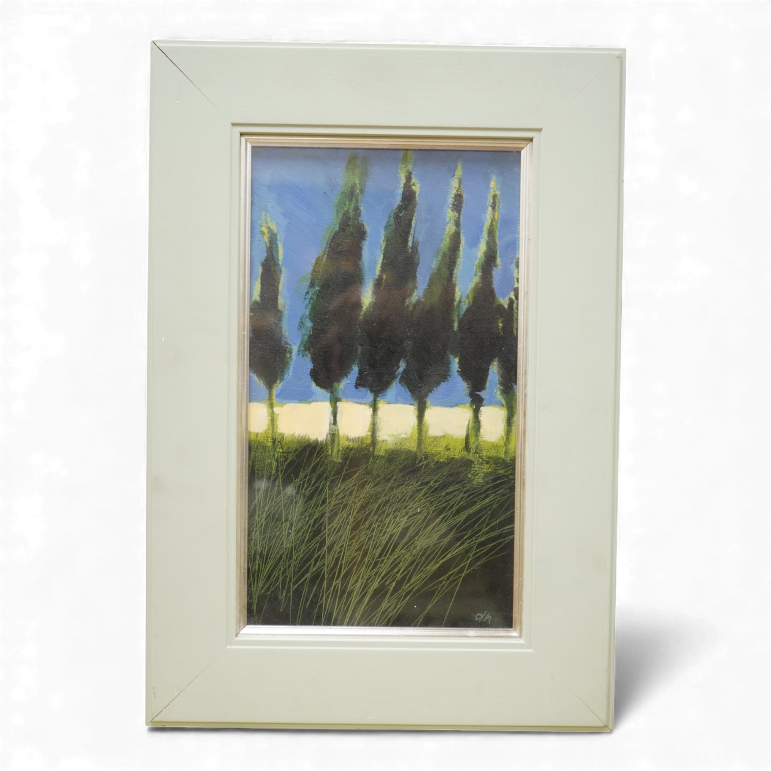 David Humphreys (b.1937), ‘High Summer, Provence’, monogrammed, inscribed verso, oil on board, 34 x 19cm