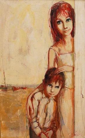 Jean-Baptiste Valadie (b.1933), ‘Expectation’, signed, label verso, oil on canvas, 60 x 37cm