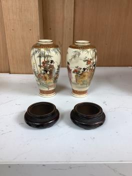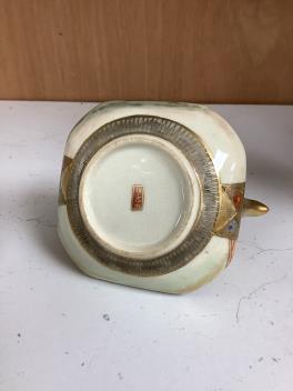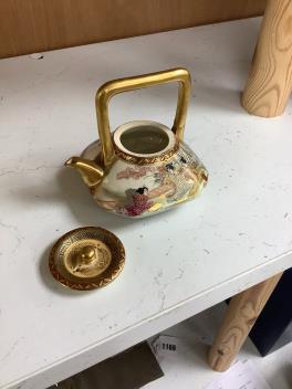 Lot 1189 , A group of Japanese satsuma pottery, 'geese' box and cover, height 12cm, a pair of miniature vases and a teapot and cover