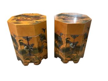 Lot 1402 , A pair of Chinese octagonal lacquer lamp tables, width 33cm, depth 33cm, height 34cm