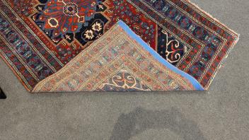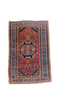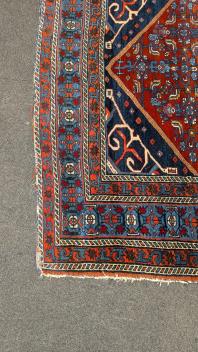 A Qashqai brick red ground rug, with central lobed medallion within a floral field and conforming border, 206 x 122cm