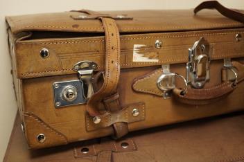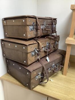 Lot 387 , A graduated set of three leather cases with chrome mounts, labelled Golden leaf, with two keys, largest 76cm wide