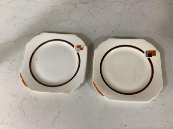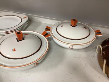 Lot 1121 , A Shelley Vogue-shape 44-piece part dinner service, and a Poole cheese dish and cover, latter 19x16cm.