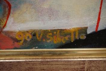 Lot 1737 , V. Sibello, ‘Adam and Eve’, signed, cubist oil on board, 64 x 76cm