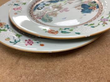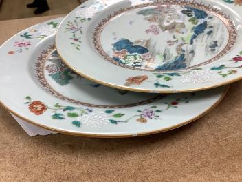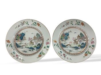 Lot 1139 , A pair of Chinese famille rose landscape plates, Qianlong period, 23cm in diameter