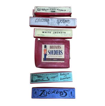 Lot 114 , Britains lead soldiers; a boxed set of ‘Types of the French Army’; Zouaves (No.142), comprising eight riflemen running, a boxed ‘Soldiers of the British Empire’; Princess Patricia’s Canadian Light Infantry (No.1633), com