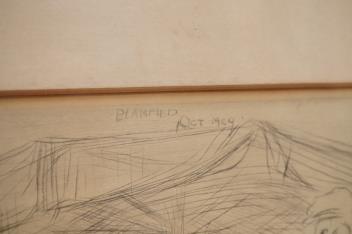 The whole somewhat cream-discoloured; no damage seen. Behind glass. Mount also discoloured; frame with rubs, particularly lower-left corners.