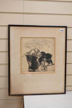 Lot 1748 , Edmund Blampied (1886-1966), ‘A Market Argument’, signed in pencil to the margin, limited edition 13/100, drypoint etching, 28 x 27cm