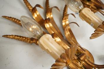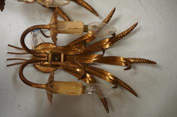 A pair of gilt-metal twin-light wheatsheaf wall sconces, 38cm high