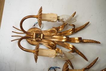Lot 1119 , A pair of gilt-metal twin-light wheatsheaf wall sconces, 38cm high