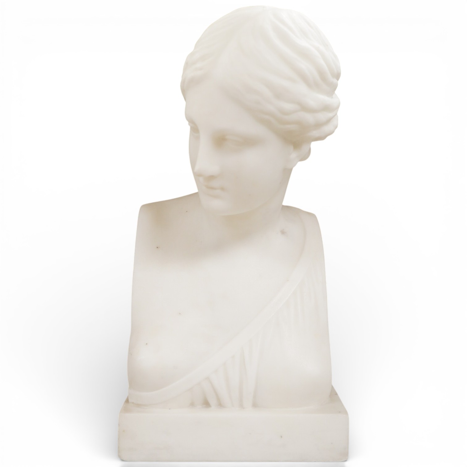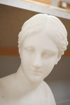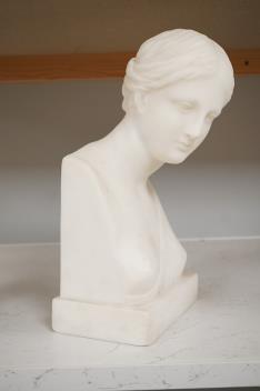 Lot 1134 , Ernesto Cali (Italian, 19th. C), a marble bust of a maiden, signed, dated 1868 and inscribed Napoli verso, 29cm high