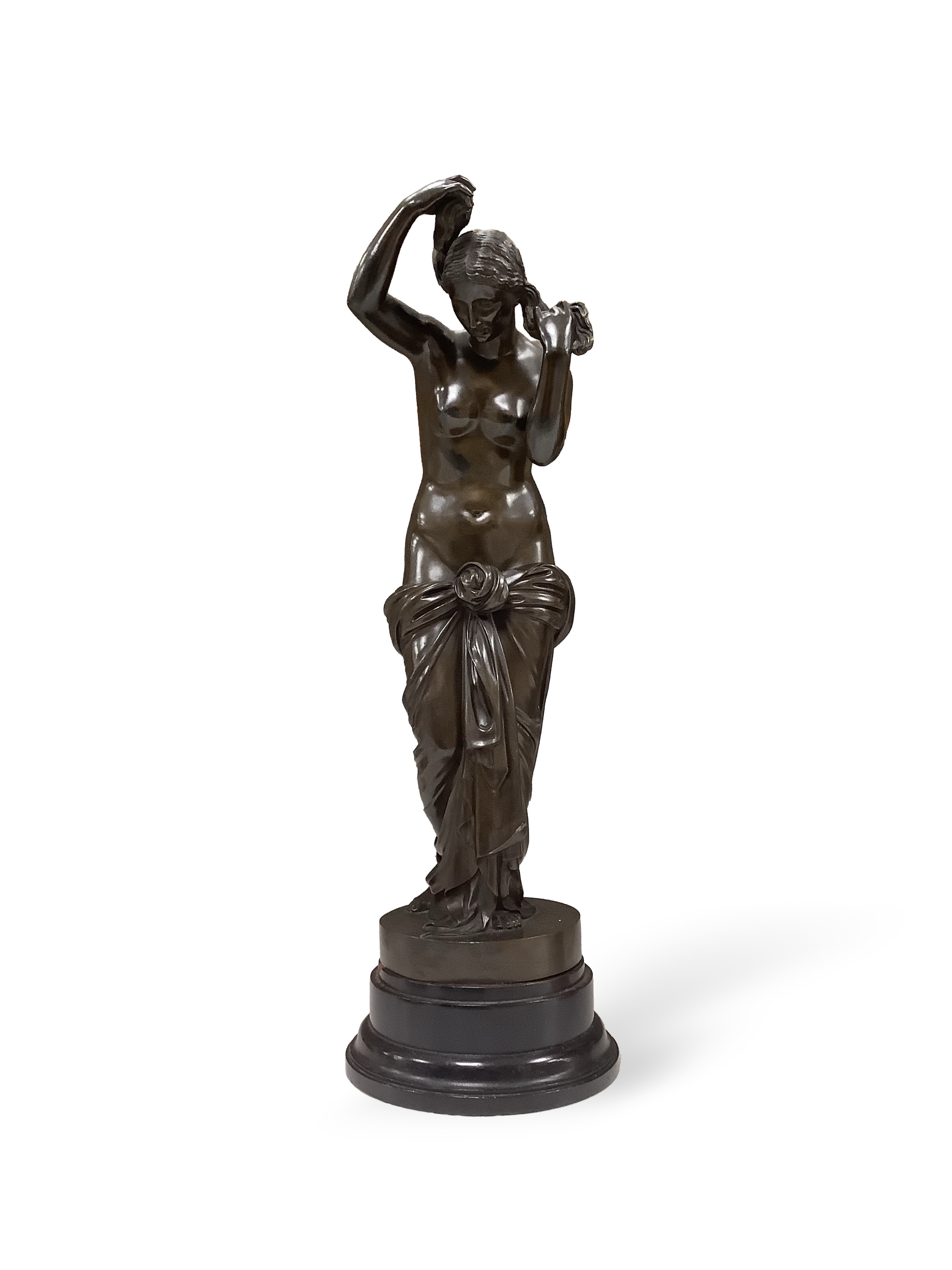 Lot 1158 , A late 19th century bronze figure of the Venus Anadyomene, raised on stepped ebonised wood base, unsigned, 41cm high